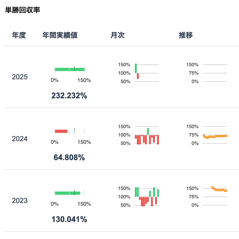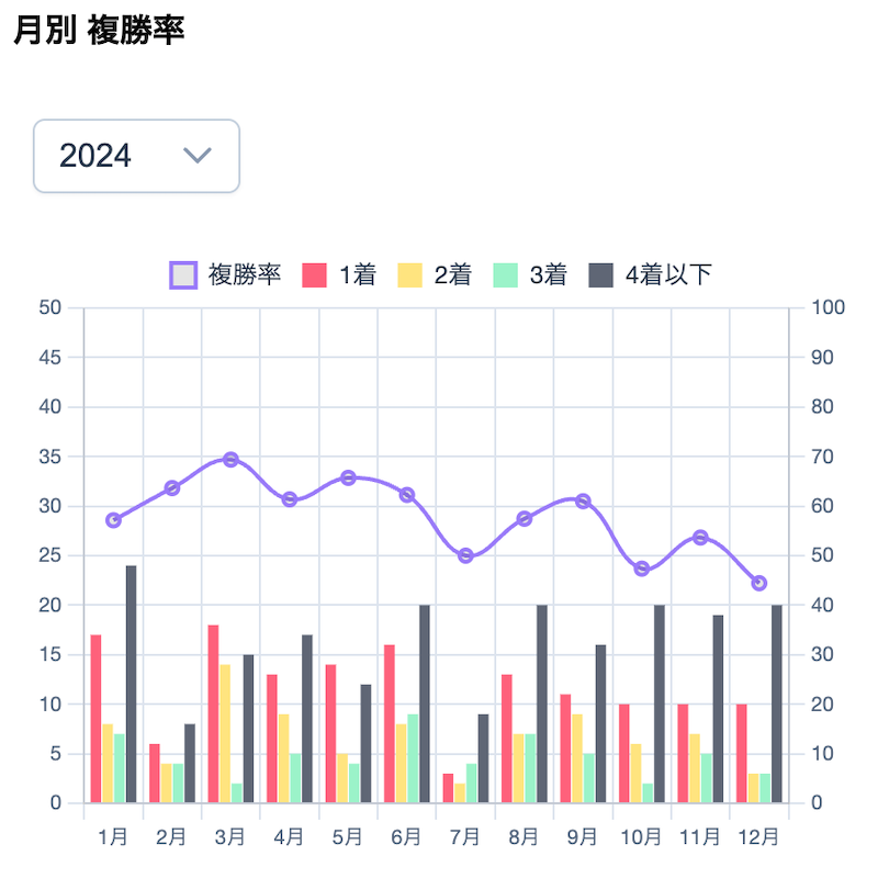 wt-backendでは1990年以降のJRA-VAN 成績データを基に計測・集計した統計データを可視化しています。